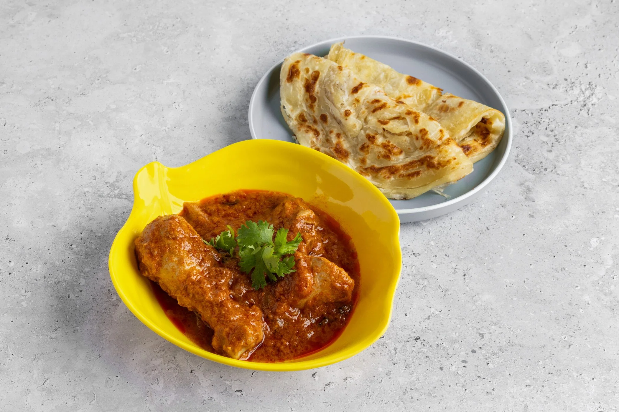 Flaky, layered South Indian parottas served with a rich and spicy Chennai-style chicken curry (8oz) . A perfect street-food classic that’s hearty, flavorful, and deeply satisfying.
